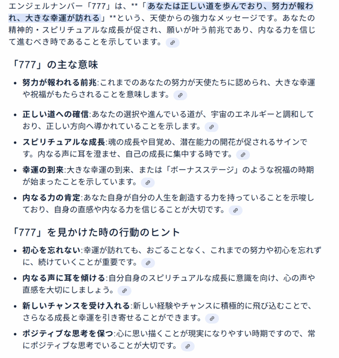 エンジェルナンバーの777をヤフーのAIで調べてみると